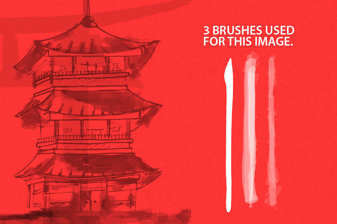 Japan ProBrush™ Free Edition Demo professional Illustrator brush pack contains 9 high quality digital, ink, watercolor, asian calligraphy brushes intended for professional designers, illustrators and artists.